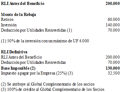 3. Por lo tanto, el cálculo de la Renta Líquida Imponible (RLI) y el impuesto a pagar por la empresa, después del beneficio, se calcula como se indica a continuación: